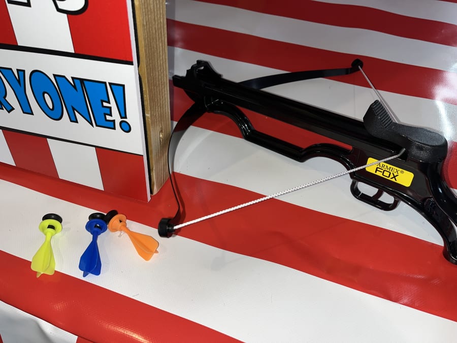 Our Crossbow Challenge Funfair game is a great add on for any Bouncy Castle or Funfair Company, These Carnival stalls are great for all ages and are a low ability funfair game meaning it's also great for all abilities and ages giving a wide range of hire client audiences. These carnival Side stall games are for sale throughout the UK and worldwide and are brilliantly designed around the Traditional Fairground theme. With many many more funfair games for sale on our website you can make a real show stopping display for your customers.