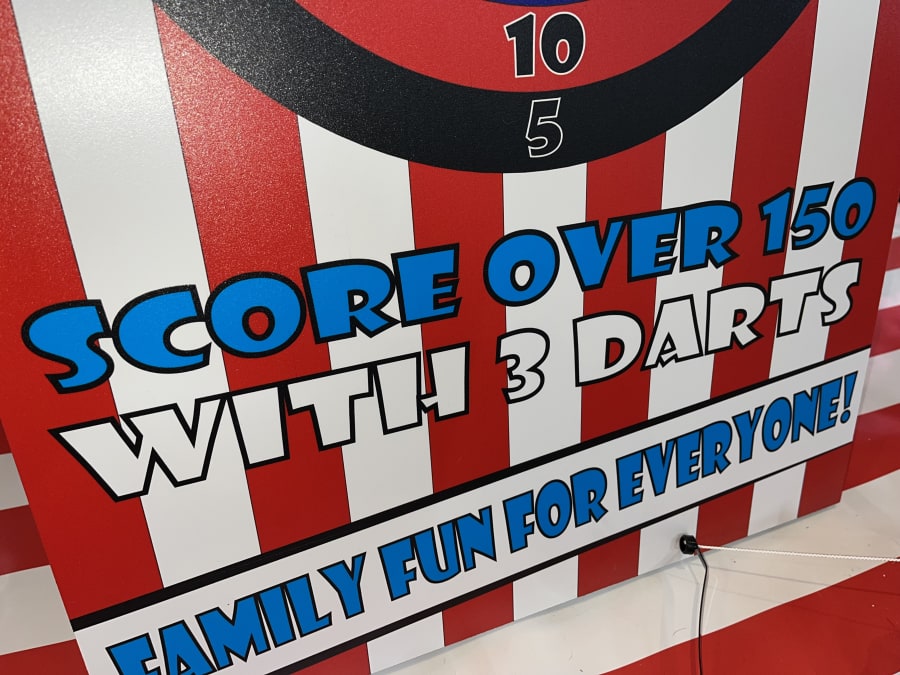 The aim of this funfair game is Fire three Darts and score over 150 to win the game or a prize depending on how you have set up for the day.