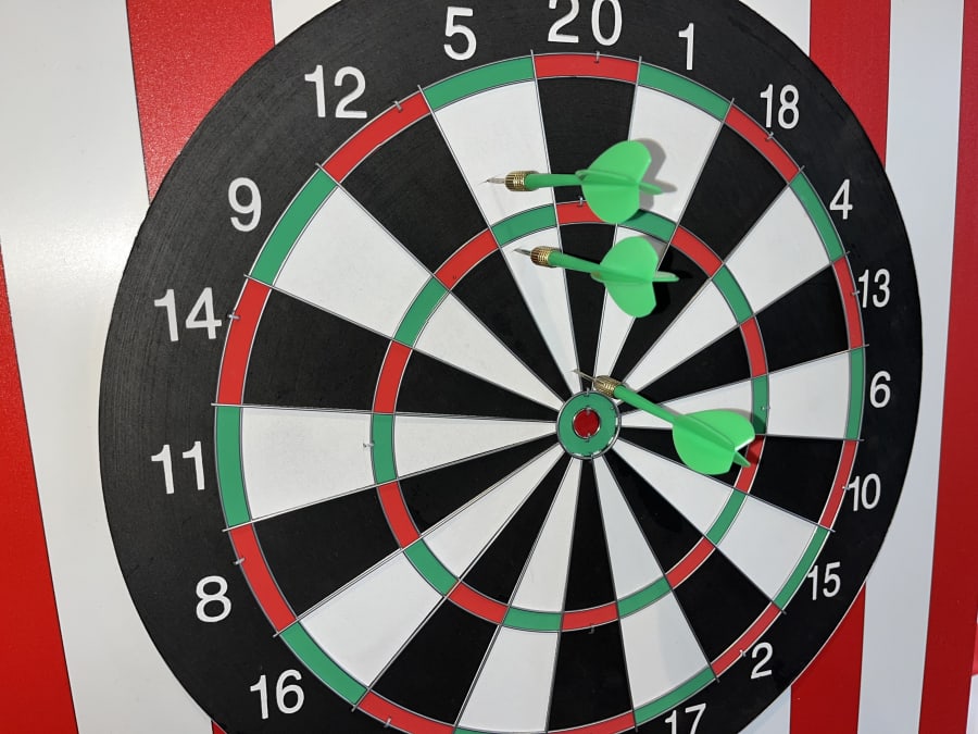 The aim of this funfair game is to throw three darts and score over 50 to win the game or a prize depending on how you have set up for the day.