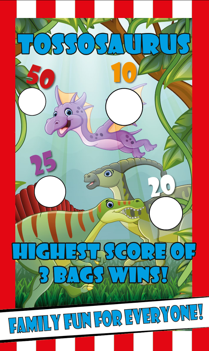 Our Dinosaur Target Toss Funfair game is a great add on for any Bouncy Castle or Funfair Company, These Carnival stalls are great for all ages and are a low ability funfair game meaning it's also great for all abilities and ages giving a wide range of hire client audiences. These carnival Side stall games are for sale throughout the UK and worldwide and are brilliantly designed around the Traditional Fairground theme. With many many more funfair games for sale on our website you can make a real show stopping display for your customers.