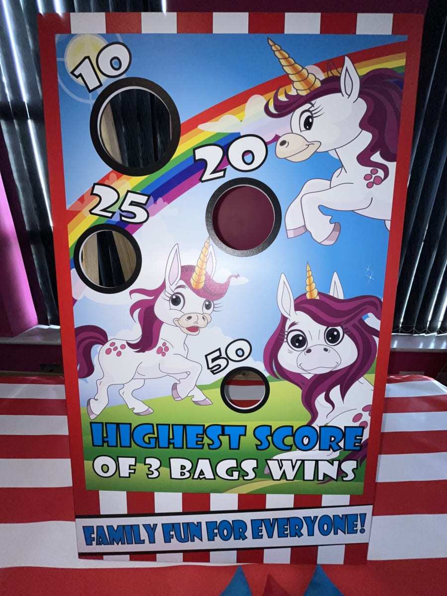 Some Funfair games may contain small parts and most carnival games involve an element of an item being thrown so we would always recommend adult supervision.