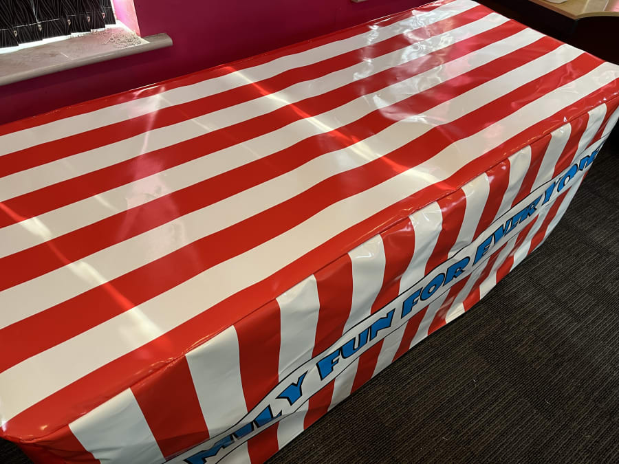Our Themed Table covers for our Funfair game are a great add on for any Bouncy Castle or Funfair Company, These Carnival stalls / table covers are great for all funfair game packages meaning all your items match and your games really stand out. These carnival Side stall games are for sale throughout the UK and worldwide and are brilliantly designed around the Traditional Fairground theme. With many many more funfair games for sale on our website you can make a real show stopping display for your customers.